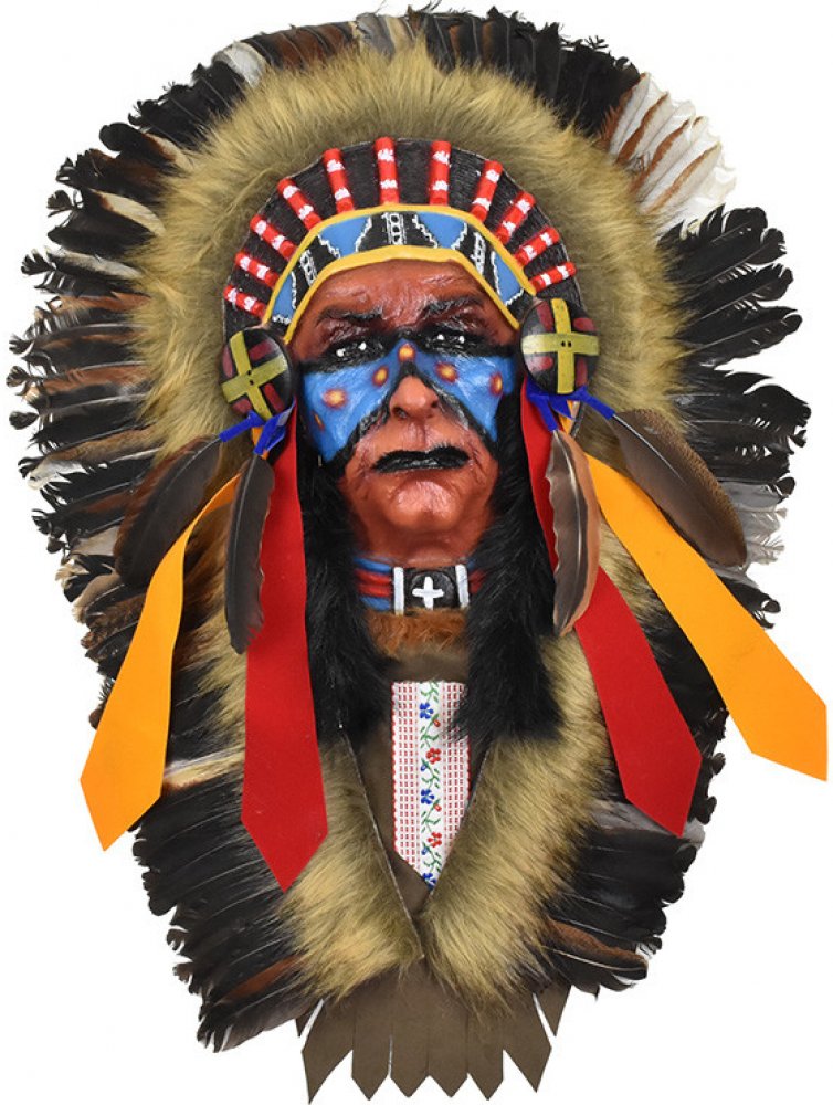 Indiánští náčelníci byli vůdci a moudří rádci svých kmenů, kteří nesli odpovědnost za rozhodování, ochranu a blaho komunity. Jejich autorita vycházela z osobní ctnosti, zkušeností a schopnosti vést, spíše než z dědičného práva. Často byli vnímáni jako strážci tradic, duchovní vůdci a zprostředkovatelé mezi lidmi a přírodou. Náčelníci byli respektováni pro svou statečnost, spravedlnost a schopnost vyjednávat s ostatními kmeny nebo kolonizátory, a jejich role byla klíčová pro udržení harmonie a rovnováhy v kmeni.S dekorací je dodáván háček pro zavěšení na zeď.