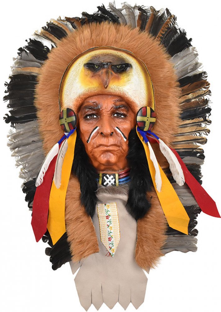 Indiánští náčelníci byli vůdci a moudří rádci svých kmenů, kteří nesli odpovědnost za rozhodování, ochranu a blaho komunity. Jejich autorita vycházela z osobní ctnosti, zkušeností a schopnosti vést, spíše než z dědičného práva. Často byli vnímáni jako strážci tradic, duchovní vůdci a zprostředkovatelé mezi lidmi a přírodou. Náčelníci byli respektováni pro svou statečnost, spravedlnost a schopnost vyjednávat s ostatními kmeny nebo kolonizátory, a jejich role byla klíčová pro udržení harmonie a rovnováhy v kmeni.S dekorací je dodáván háček pro zavěšení na zeď.