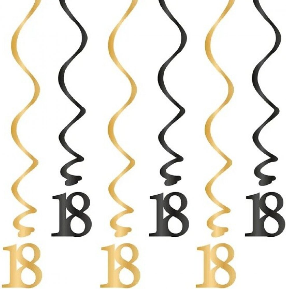 Tyto originální spirály se vyznačují vzorovanou kombinací klasické zlaté a černé barvy a jsou perfektním doplňkem oslavy 18. narozenin.