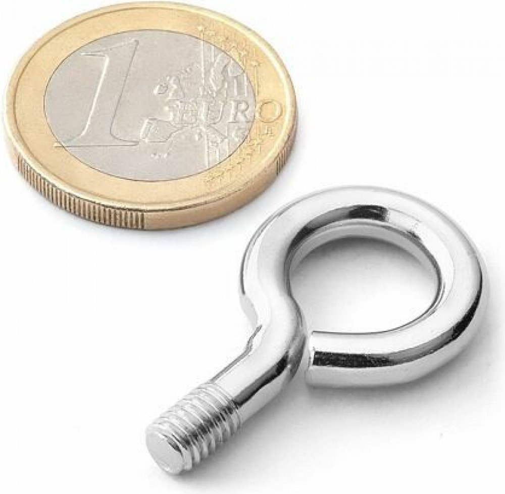 Pevný ocelový závěsný šroub s okem se závitem M6. Pro větší odolnost je poniklovaný (Ni-Cu-Ni). Hodí se k přišroubování na magnetické úchyty s vnitřním závitem M6 a následné zavěšení náčiní, pomůcek či k napnutí lanek, upínacích šňůr. Závěsné oko se závitem M6 využijete: pro zavěšení nářadí a náčiní s háčkem, k napnutí lanek, vodicích drátů pro popínavé rostliny, na upnutí markýz, rolet, zástěn, sítí proti hmyzu, pro zavěšení osvětlovacích řetězů a svítidel, k výzdobě a pověšení dekorací, ozdob na oslavách a společenských akcích, na připevnění bytových, vánočních a velikonočních dekorací, věnců, je ideální v kombinaci s magnetickými úchyty s otvorem na závit M6. Závěsný šroub můžete prostrčit skrze připravený vyvrtaný otvor a na druhé straně zafixovat matkou. Je rovněž vhodný k našroubování na tyto magnetické úchyty: Pogumovaný magnetický úchyt PM-66-G na oděru náchylné povrchy Vybrané bipólové magnetické úchyty v mosazi k upnutí obrobků Magnetický úchyt v ocelovém cylindru se stopkou PM-42 Některé horku odolné AlNiCo magnetické úchyty se závitem M6 Rozměry závěsného oka H 37 mm b 12 mm h 5 mm M M6 Využijte praktičnost a sílu magnetických držáků a úchytů.