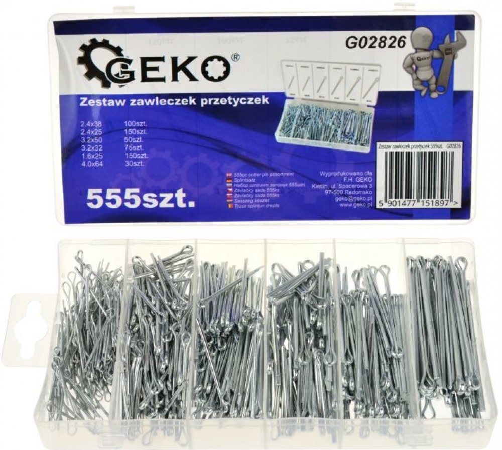 Závlačky, délka 25 - 64 mm, nerezové, sada 555 kusů GEKO G02826