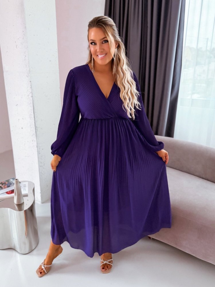 Zazza dlouhé plisované šaty tm.fialové