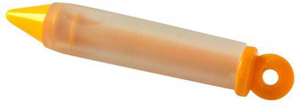 Pístová zdobička pokrmů z průhledného silikonu a plastu. Lze použít na krémy, polevy, šlehačku, slané paštiky, pomazánky ke zdobení dortů, koláčů, jednohubek, obložených chlebíčků. Materiál - silikon. Silikon je lehce omyvatelný. Rozměry - 2,2 x 15 cm.