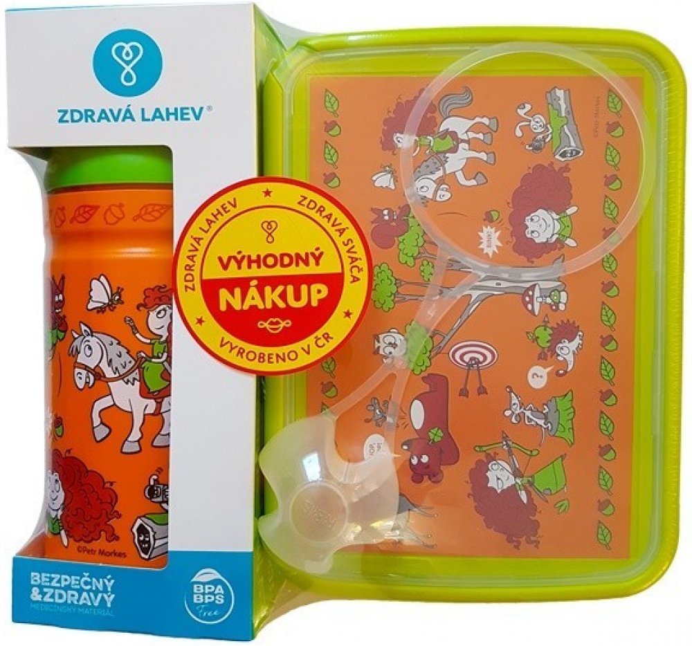 - Zdravou láhev 0,5l s náhradní zátkou - Svačinový box Zdravá sváča s papírovým vkladem pod průhledkou dle motivu Zdravé lahve - Krytku Floppy na Zdravou lahev