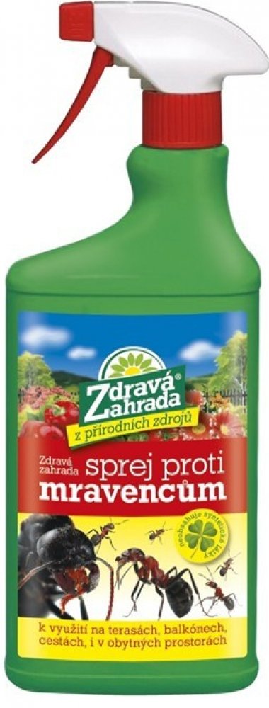 Sprej proti mravencům Zdravá zahrada je ideální pomocník pro likvidaci obtížných mravenců. Sprej proti mravencům je založen na účinné látce pyrethrin, která je přírodní a je vyrobena z květů kopretiny. Přípravek účinkuje rychle a je určen k odstranění mravenců v obytných prostorách, na balkonech a terasách. Sprej proti mravencům neobsahuje žádné pyretroidy ani jiné syntetické látky. Sprej je určen k přímému použití. Aplikace se provádí pomocí mechanického rozprašovače důkladným postřikem mravenčích stezek. Objem balení je 500 ml.