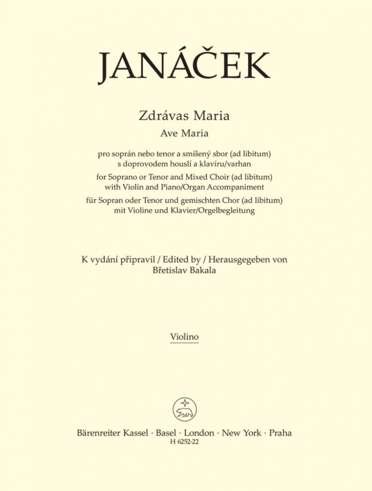 Známá modlitba Zdrávas Maria (Ave Maria) byla ve formě mimoliturgického zpěvu hojně zhudebňována v různých slohových obdobích. Leoš Janáček ji pojal ve dvoudílné formě, v první verzi pro tenor a smíšený sbor s prostým a střídmým doprovodem houslí a varhan, ve druhé verzi pro tenor nebo soprán se sborem ad libit...