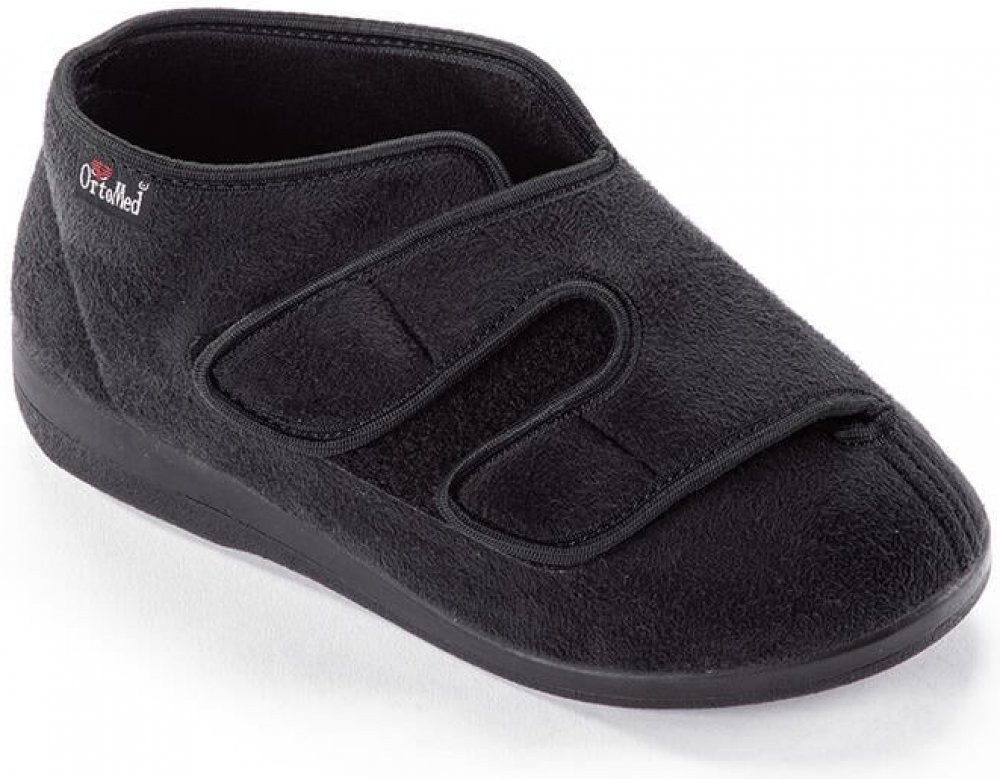 Lehké zdravotní boty s dvojitým páskem na suchý zip jsou ideální pro všechny, kteří trpí otoky nebo jinými problémy nohou. Boty mají široké otvírání, lehce se nazouvají a pásek lze nastavit přesně na požadovanou šířku. Použité materiály jsou měkké, aby se boty dobře přizpůsobily vašim chodidlům. Pevná polyuretanová podrážka zajišťuje dobrou oporu při chůzi. Svršek je vyroben z prodyšného mikroveluru, vnitřek filc. Materiál: polyester, syntetika, polyuretan V případě váhání mezi dvěma velikostmi doporučujeme zvolit tu větší.