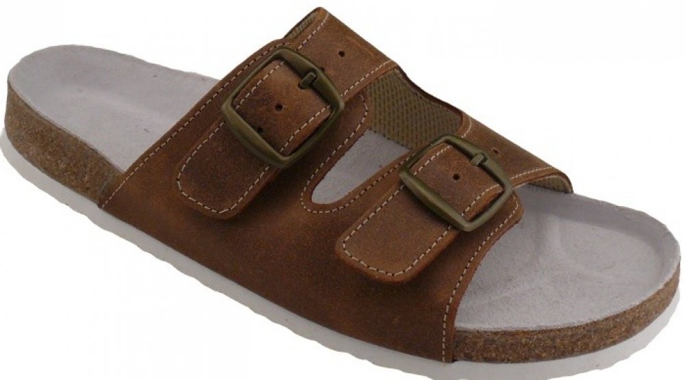 Velmi oblíbená interiérová obuv v měkčeném provedení z korko-latexového výlisku je potažena stélkou z přírodní usně (hovězinové štípenky).
