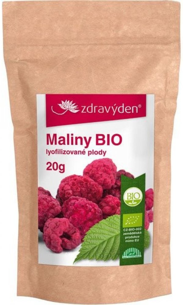 BIO maliny Zdravý den® jsou sušené celé plody, které se suší lyofilizací - sušením mrazem při nízkém tlaku. Lyofilizace je šetrný způsob sušení, který v plodech zachovává všechny obsažené živiny.