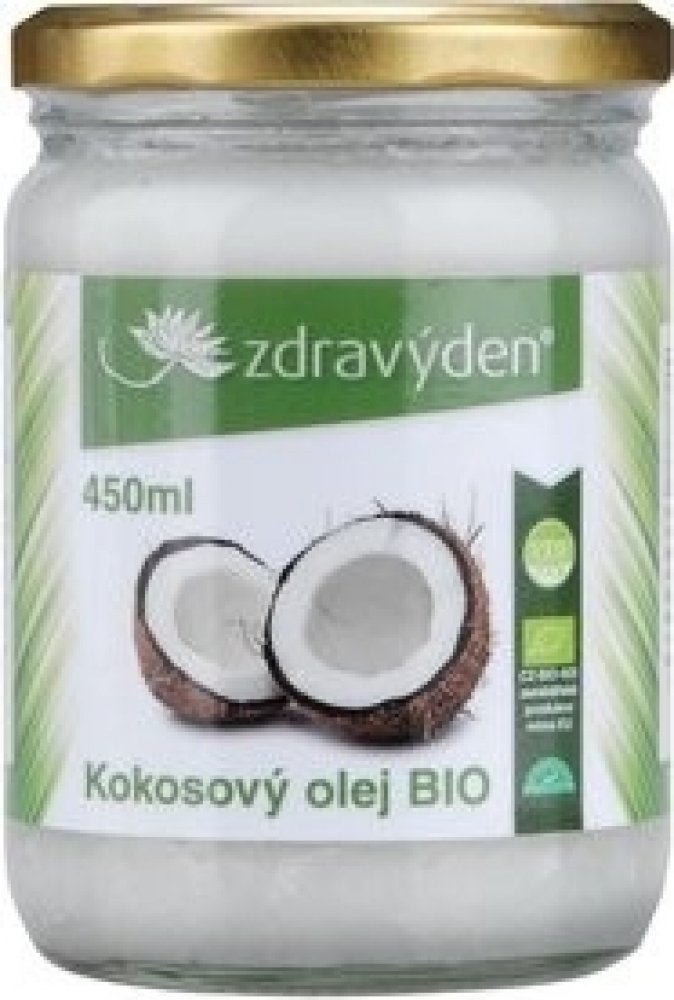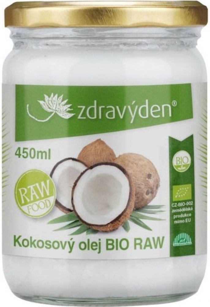 Bio a raw kokosový olej Zdravý den je vyrobený z čerstvých ekologicky pěstovaných kokosových ořechů. Jedná se o čistou formu kokosového oleje vyrobeného z čerstvé kokosové dužiny lisováním za studena při nízké teplotě. Bio kokosový olej má čistě bílou barvu, skvělou chuť a jemnou kokosovou vůni. Obsahuje přes 50% kyseliny laurové (kyselina dodekanová).