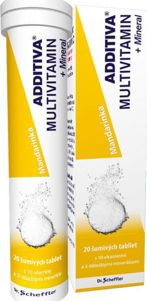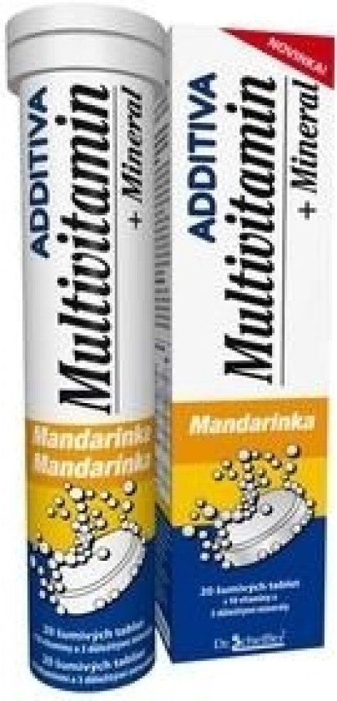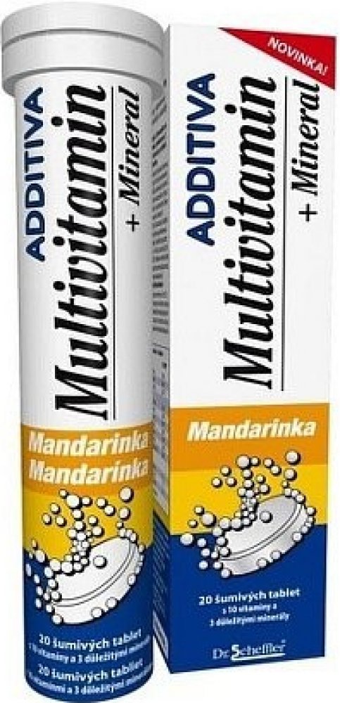 Doplněk stravy multivitamínový s minerály a sladidly, šumivé tablety s příchutí mandarinky obsahují směs navzájem se doplňujících vitamínů a minerálů.Vitamin C, vitamin B6 a vitamin B12 přispívají k: správné funkci psychiky, správnému fungování imunitního systému a snížení vyčerpání a únavy.