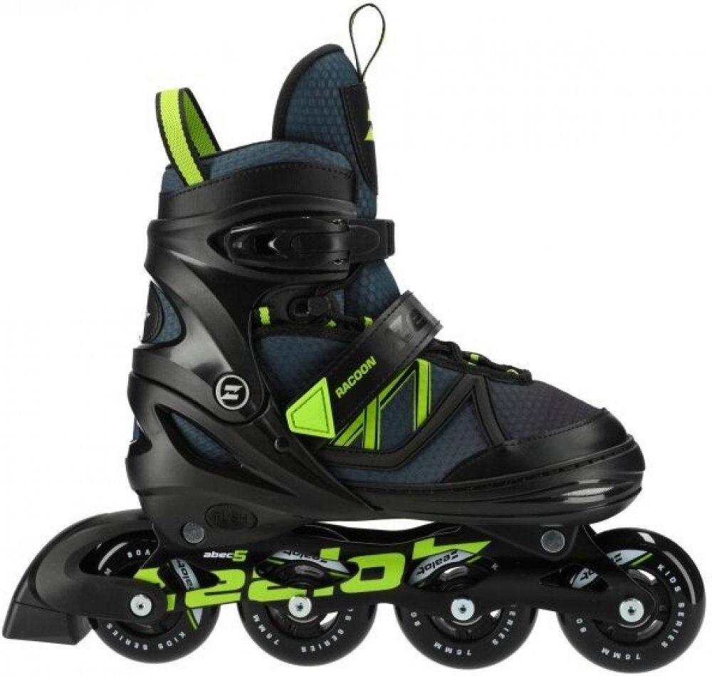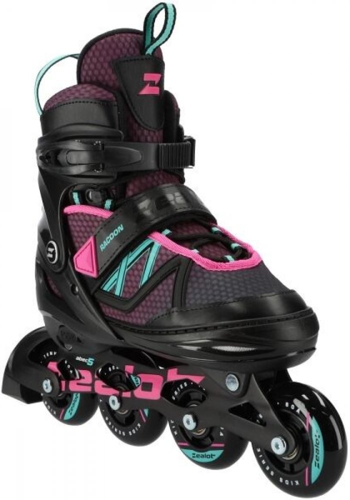 Juniorské inline brusle Zealot Racoon s hliníkovým rámem a nastavitelnou velikostí boty v rozsahu 4 velikostí. Brusle jsou osazeny kolečky o průměru 72 mm, respektive 76 mm u větší z nabízených velikosti s tvrdostí 80A a ložisky ABEC 5.