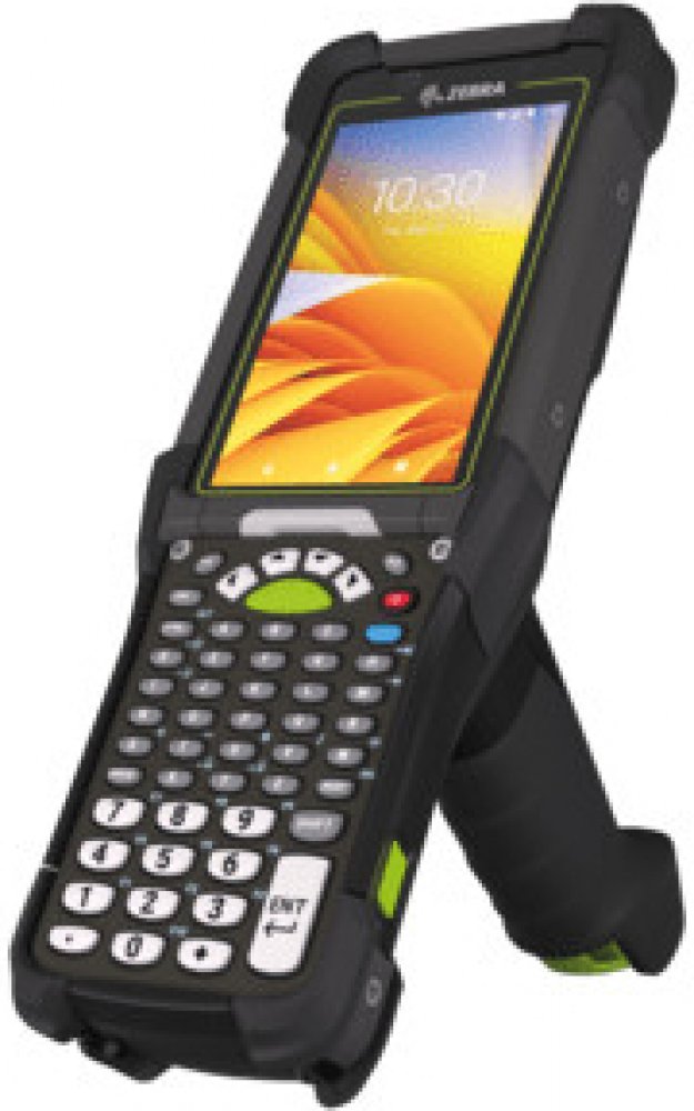 portable data collection device, 2D, imager (SE5800), screen size: 10,9cm (4,3''), keypad (Quantity keys 53 keys, alphanumeric), GPS, pistol grip, vibration, Bluetooth, Wi-Fi (Wi-Fi 6E), 5G, NFC, Micro SD-Slot, Qualcomm Octa Core, 2.4GHz, RAM: 6 GB, Flash: 128 GB, Android, incl.: Google Mobile Services, battery, 7000 mAh, protection class: IP65, IP68