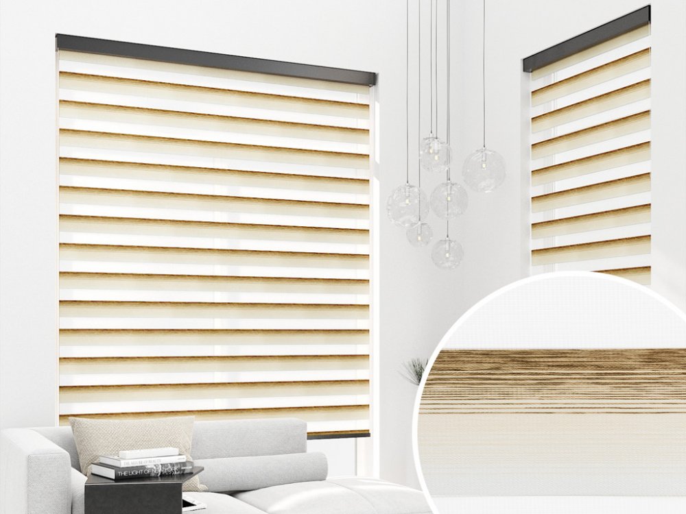 Rolety DEN A NOC jsou ideálním a moderním způsobem jak plynule regulovat stínění ve dne a zabezpečit pocit soukromí v noci. Princip je založen na dvou vrstvách látky kde se střídají průhledné a neprůhledné vodorovné pruhy. Navíjením jedné vrstvy látky dochází k regulaci průniku světla. Řetízkovým ovládáním si tedy můžete navolit pruhy látky tak, aby jste v místnosti vytvořili světlo nebo tmu - je to jenom na Vás. Roletu můžete zastavit v libovolné výšce.