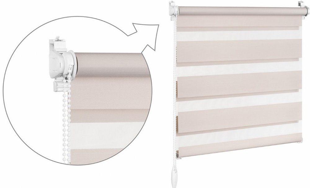 Rolety DEN A NOC jsou ideálním a moderním způsobem jak plynule regulovat stínění ve dne a zabezpečit pocit soukromí v noci. Princip je založen na dvou vrstvách látky kde se střídají průhledné a neprůhledné vodorovné pruhy. Navíjením jedné vrstvy látky dochází k regulaci průniku světla. Řetízkovým ovládáním si tedy můžete navolit pruhy látky tak, aby jste v místnosti vytvořili světlo nebo tmu - je to jenom na Vás. Roletu můžete zastavit v libovolné výšce.