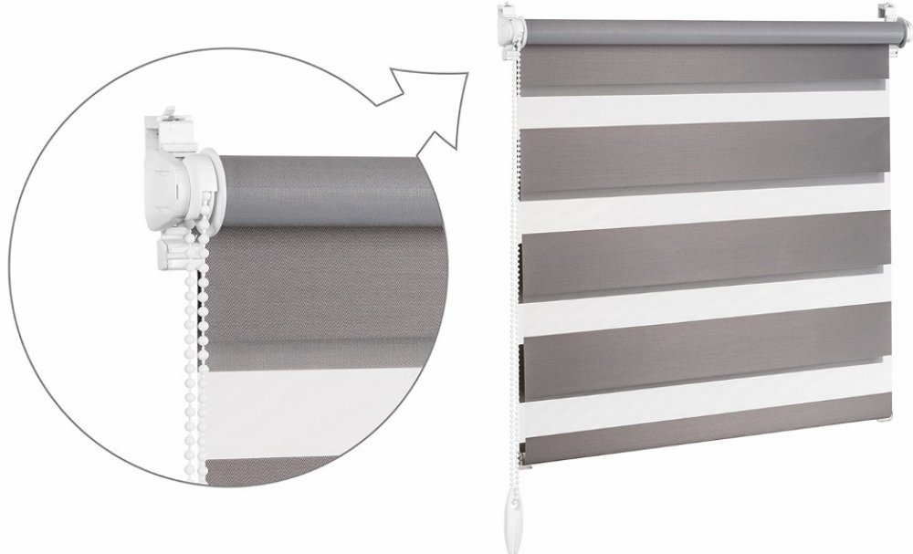 Rolety DEN A NOC jsou ideálním a moderním způsobem jak plynule regulovat stínění ve dne a zabezpečit pocit soukromí v noci. Princip je založen na dvou vrstvách látky kde se střídají průhledné a neprůhledné vodorovné pruhy. Navíjením jedné vrstvy látky dochází k regulaci průniku světla. Řetízkovým ovládáním si tedy můžete navolit pruhy látky tak, aby jste v místnosti vytvořili světlo nebo tmu - je to jenom na Vás. Roletu můžete zastavit v libovolné výšce.