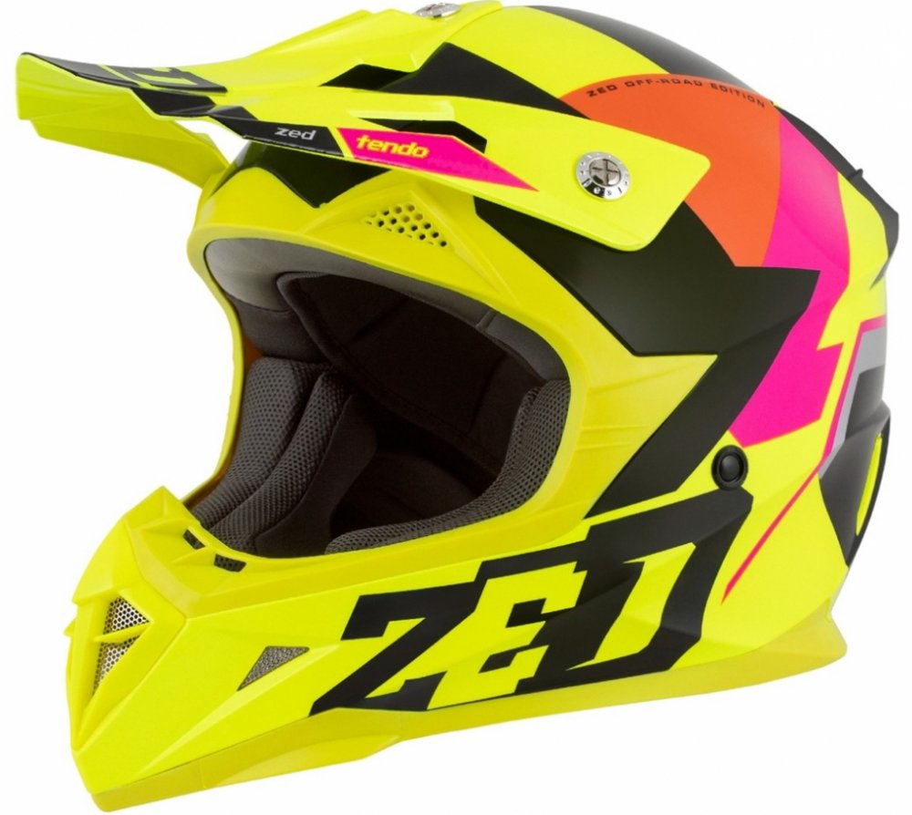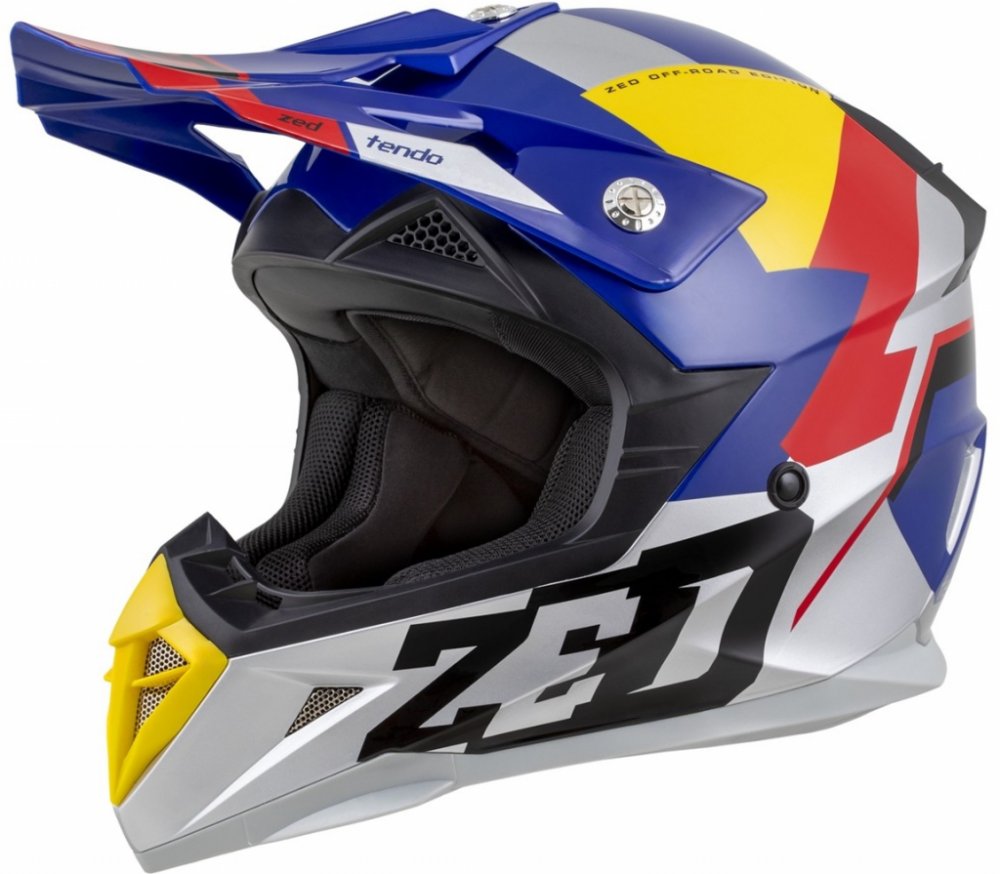 Motokrosová dětská přilba X1.9 TENDO od značky ZED, model 2025, polykarbonátová skořepina, inovovaná plně odnímatelná a pratelná výstelka, nastavitelný kšilt, homologace ECE 22.06.P