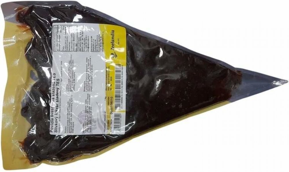 Složení: ovocný protlak švestka (85%), cukr, glukózovo-fruktózový sirup, modifikovaný škrob E1442, kyselina E330, cukr karamelizovaný, aroma.