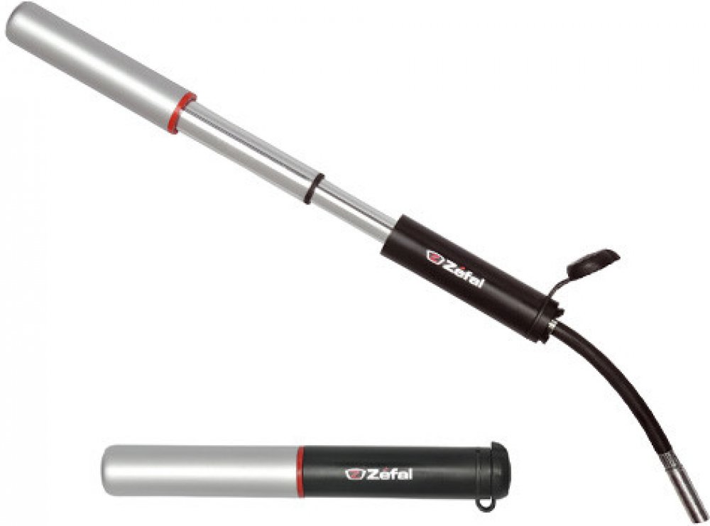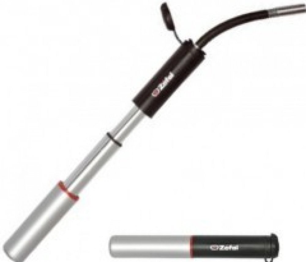 Univerzální teleskopická minipumpa.Flexibilní spojení zajišťuje dobrý přístup a zabraňuje poškození. Z-flex spojení rychlá a jednoduchá přeměna pro galuskový nebo autoventilek. Patent Zefal.
