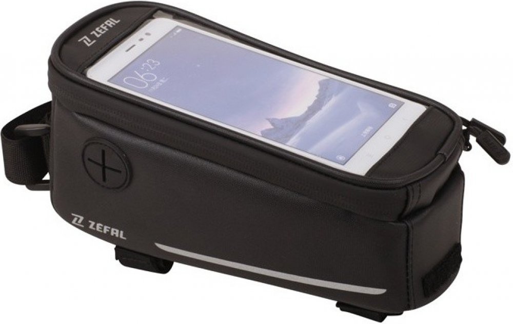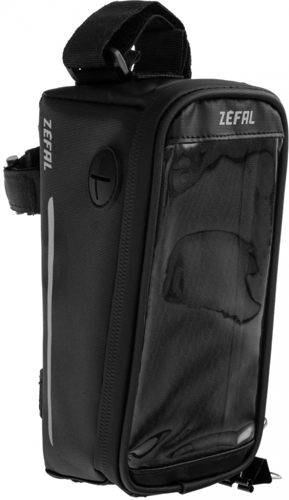 Rámová brašna s integrovaným držákem smartphonu. Je ideální pro přepravu smartphonu a malých předmětů (opravárenské soupravy, kazety s CO2, peníze, klíče atd.). Velmi praktické; Dvojitý popruh na suchý zip umožňuje snadné připevnění ke všem typům rámů, a to i těch nejširších, bez rizika poškrábání. Dotyková obrazovka smartphonu může být také použita stejně jako sledování jízdních údajů nebo rychlo...