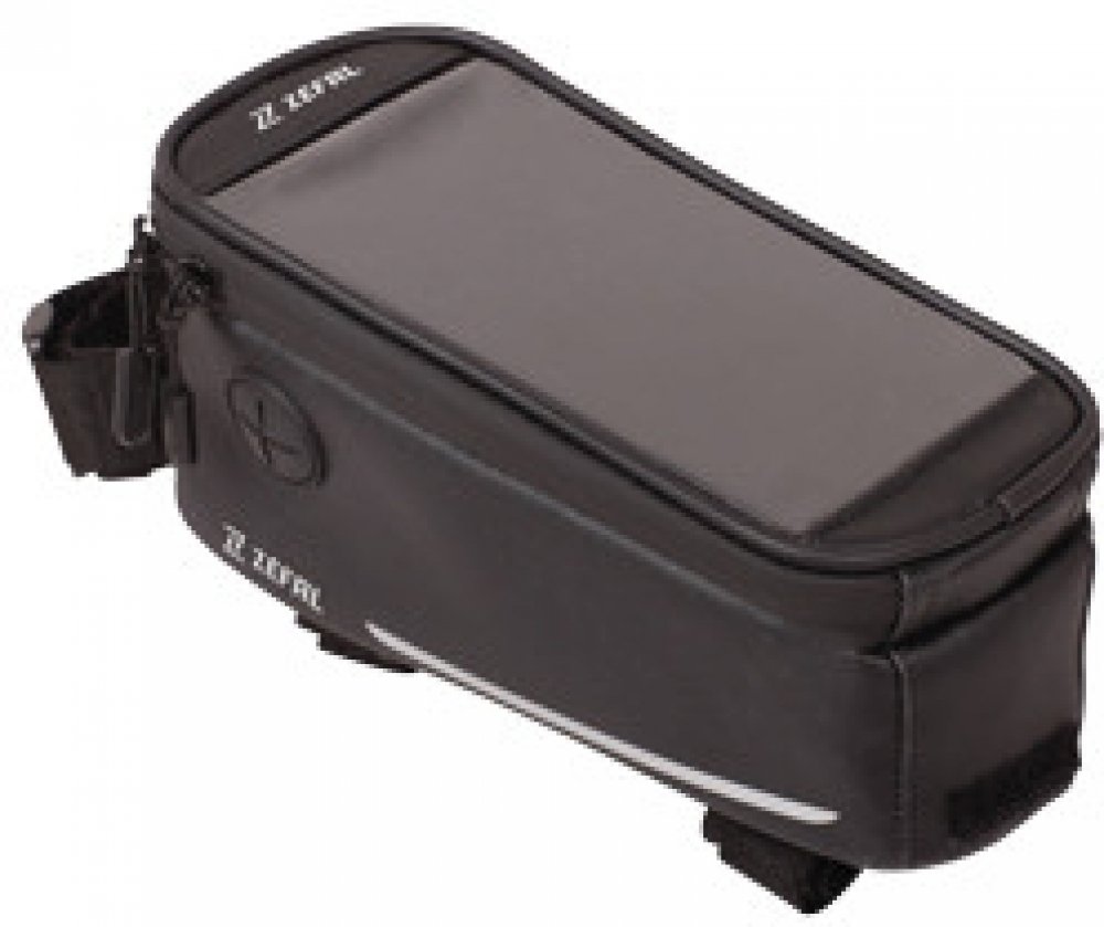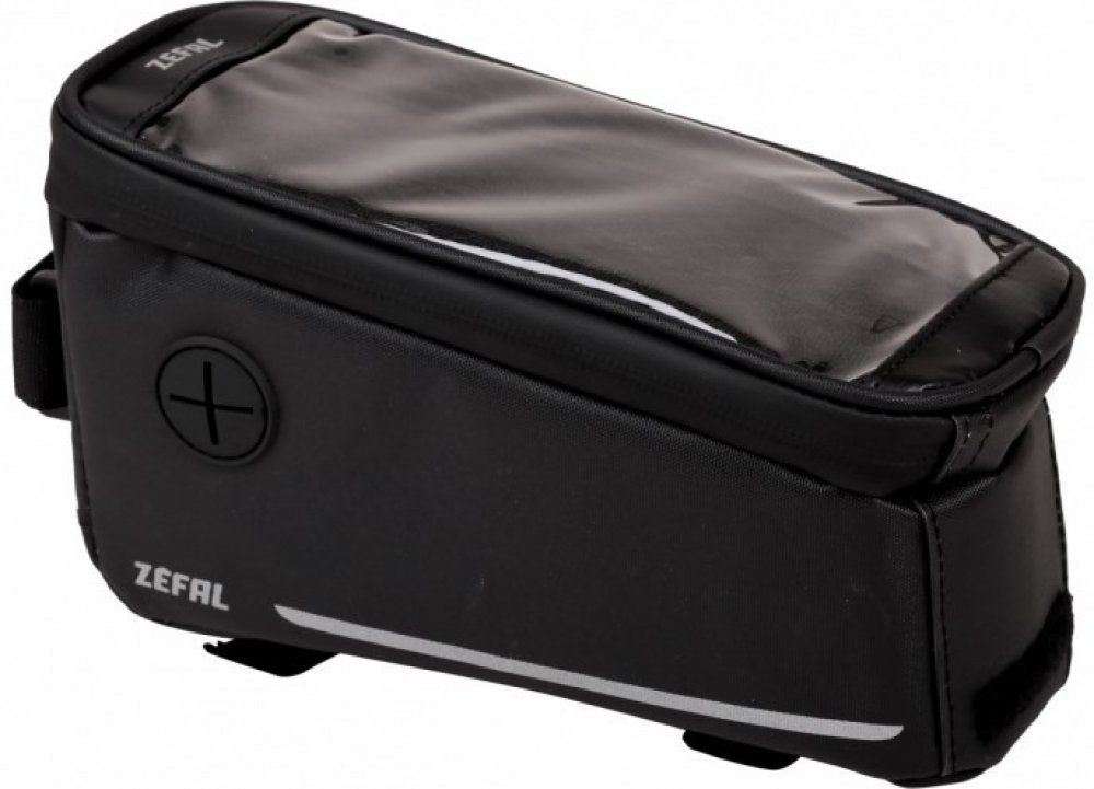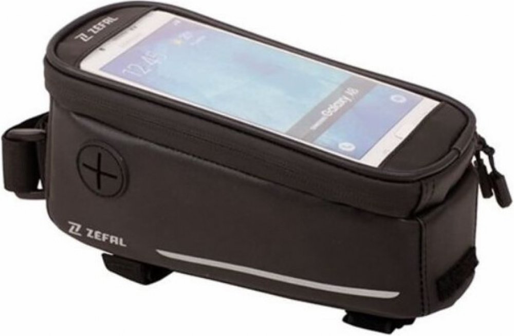 Rámová brašna s integrovaným držákem smartphonu. Je ideální pro přepravu smartphonu a malých předmětů (opravárenské soupravy, kazety s CO2, peníze, klíče atd.). Velmi praktické; Dvojitý popruh na suchý zip umožňuje snadné připevnění ke všem typům rámů, a to i těch nejširších, bez rizika poškrábání. Dotyková obrazovka smartphonu může být také použita stejně jako sledování jízdních údajů nebo rychlosti. Integrovaná pláštěnka je součástí balení.