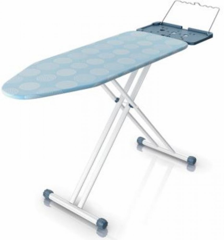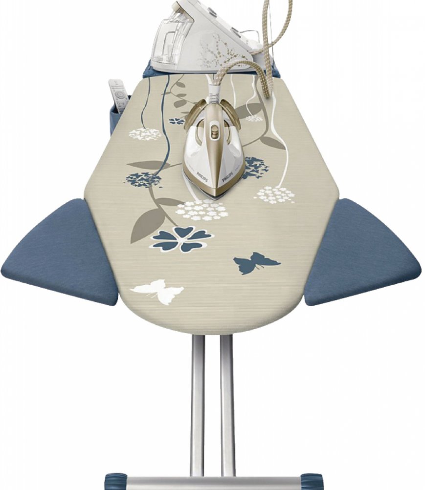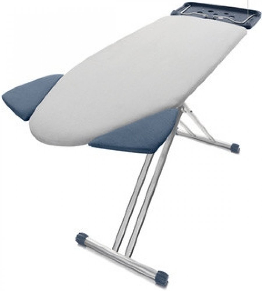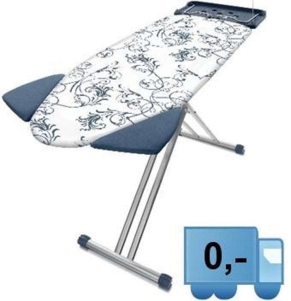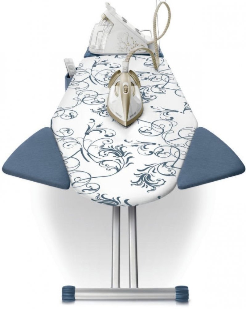 Žehlicí prkno s praktickým XL tvarem žehlicí plochy 120 x 45 cm a velkým rozměrem držáku žehličky. Díky unikátnímu systému ShoulderWing bude žehlení triček snadnější.