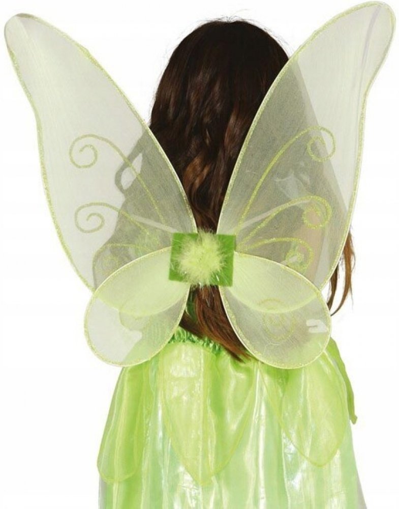 Pistáciově zelená punčochová křídla s třpytivým vzorem. Na spojování peříčka boa. Elegantní doplněk k převleku víly, lesního skřítka, skřítka nebo zvonečku. Nasazuje se na gumičkách jako batoh.
