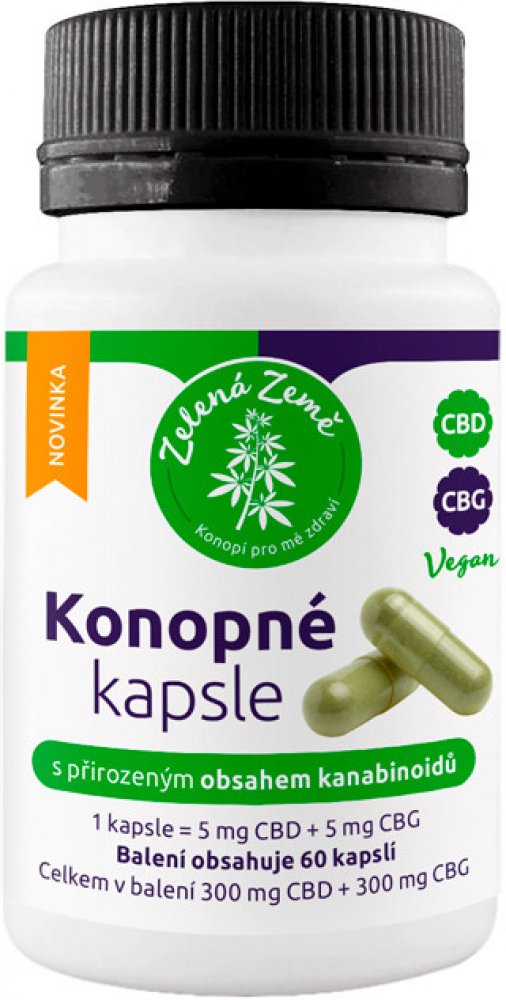 Zelená Země Konopné kapsle s obsahem CBD + CBG 60 ks