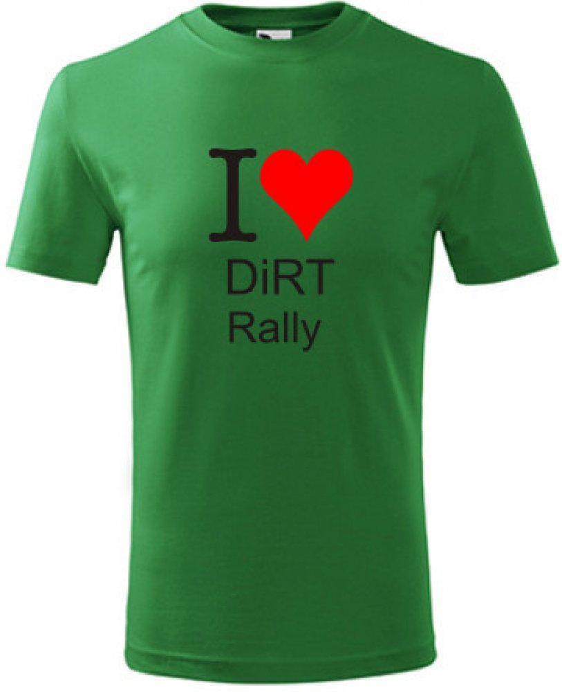 Zelené dětské tričko I love DiRT Rally. nabízené velikosti jsou 4 roky, 6 let, 8 let, 10 let, 12 let. Výběr z 13ti barev. Tričko patří do kategorií Trička I love závodní hry - dětská, . Technologie potisku: Tisk na tričko je realizován pomocí termolisu a potisk je velice trvanlivý.