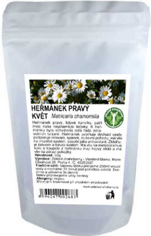 Heřmánek pravý - Chamomilla recutita je jednou z nejužívanějších bylin vůbec. Pomáhá udržovat normální trávení, normální funkce dýchacího systému, pomáhá s uvolněním dýchacích cest. Pro své hojivé vlastnosti je účinný pro zdraví pokožky.