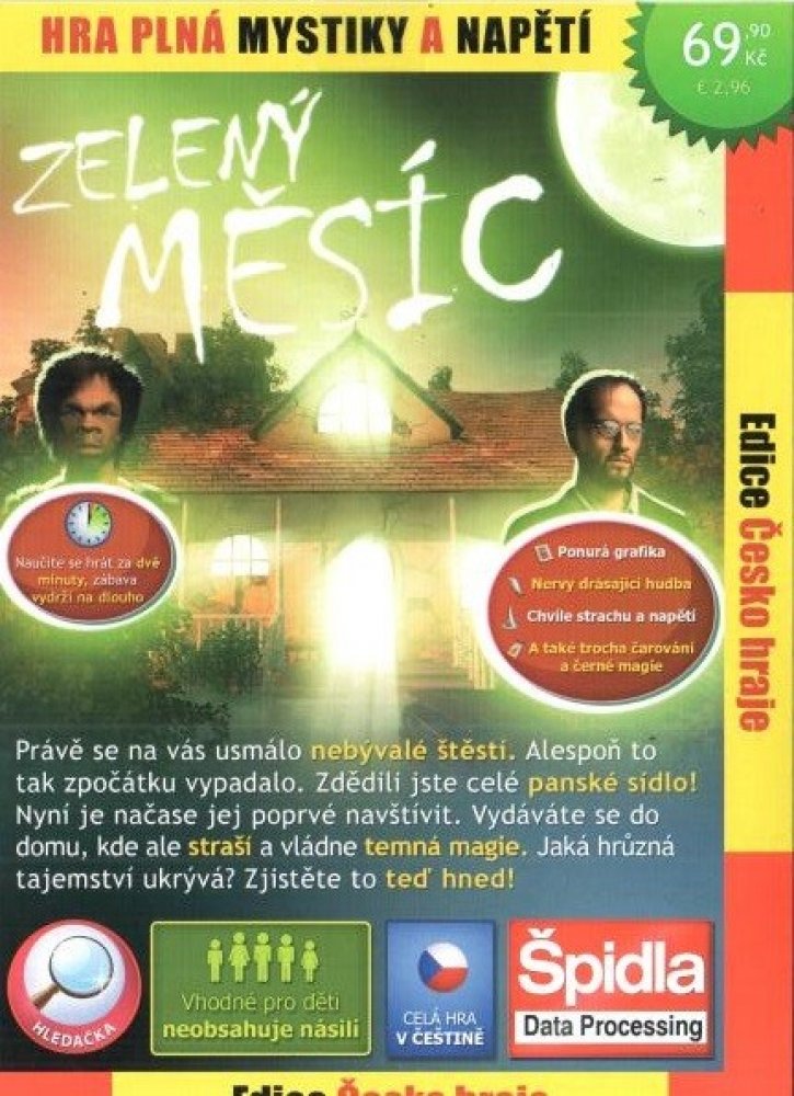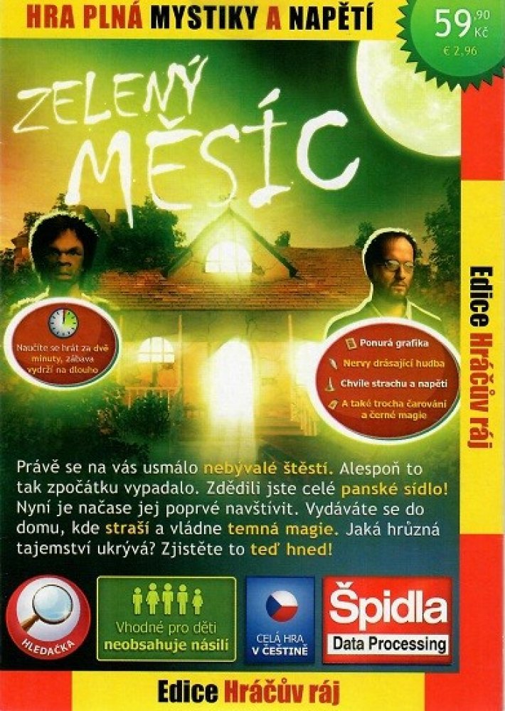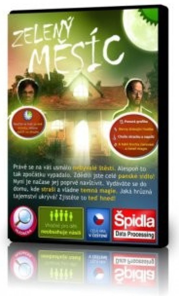 Jste sami uprostřed opuštěného domu. Předchozí nájemník je nezvěstný. A vy jakožto jediný právoplatný dědic jste se jej rozhodli prozkoumat. Místnost po místnosti. Brzy se dozvíte, že tento dům obýval mocný čaroděj. Po celé dny a noci zde byl zavřený a pracoval na… na čem, na to musíte přijít vy sami!Prozkoumejte celý dům. Prolezte každý pokoj. Sbírejte předměty. Hledejte magické ingredience. Ponořte se do nitra vysoké alchymie. Učte se čarovat stejně jako váš předchůdce. Dejte si však pozor, abyste nedopadli jako on a čirou náhodou také nezmizeli z povrchu zemského. Ve sklepě objevíte tajemnou knihu plnou podivných úkolů. Při jejich splnění stvoříte na Měsíci podmínky potřebné pro život a vznikne tak Zelený měsíc. Jste na to připraveni?Čeká na vás:Ponurá grafika,Nervy drásající hudba,Chvíle strachu a napětí,A také trochu čarování a černé magie,Požadavky: Windows, procesor 650MHz nebo lepší, RAM 128MB, DirectX, Grafická karta 32MB. Před zakoupením hry prosím stáhněte demoverzi a vyzkoušejte jí. Pokud vám bude bez problémů fungovat demoverze, bude vám fungovat také plná verze. Zkušební plnou verzi hry můžete hrát zdarma a bez omezení půl hodiny a můžete ji stáhnou přímo ze stránky hry.Zkušební verze hry je ZDE Jedná se o plnou verzi se všemi funkcemi omezenou na půl hodiny hry.