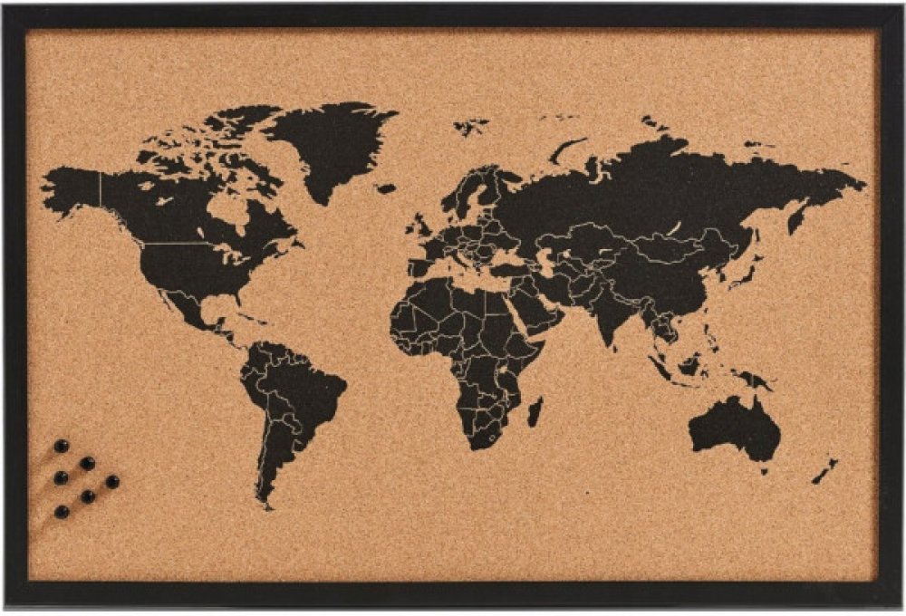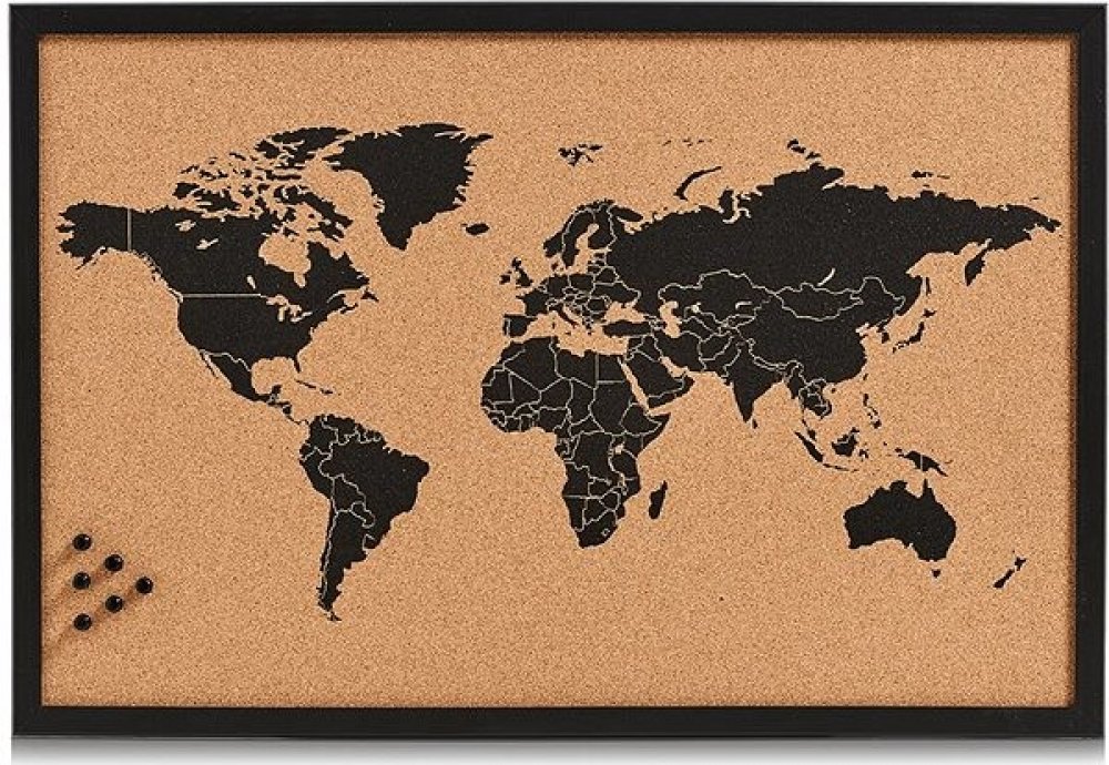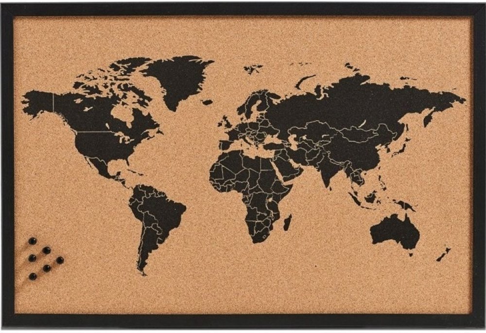 Tato mapa vám umožní označovat místa, která jste navštívili, plánovat své cestovní trasy nebo si jednoduše vytvořit přehled o světě přímo na vaší stěně. Díky korkové povrchu můžete do mapy píchnout špendlíky či kolíčky a personalizovat ji podle svých potřeb a preferencí. Velikost 59 × 40 cm zajišťuje dostatečný prostor pro detailní zobrazení světové mapy, zatímco černohnědý design dodá vašemu pros...