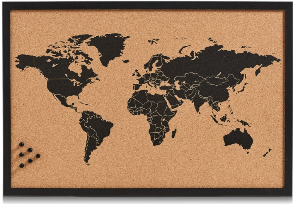 Zeller Korková nástěnka mapa světa, černohnědá 59 x 40 cm