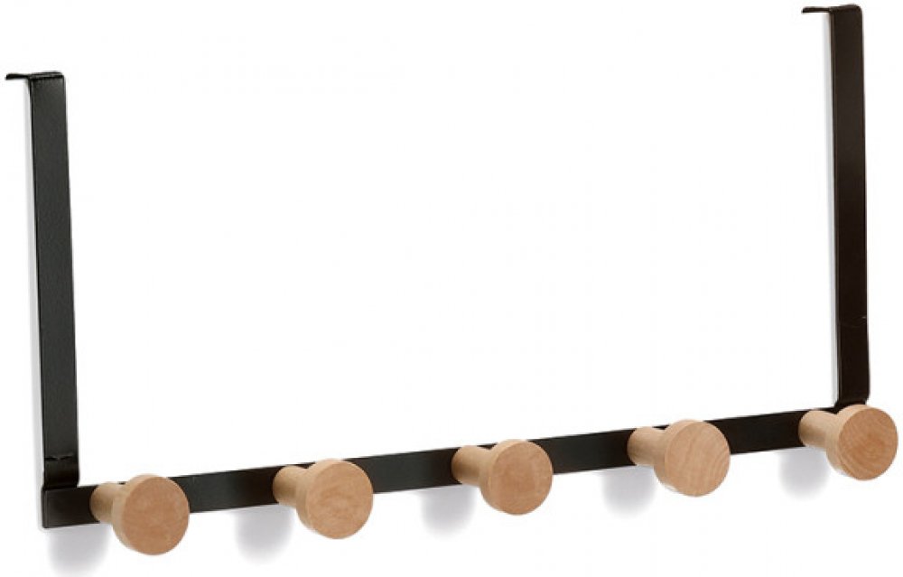 Háček na dveře, kovový věšák s dřevěnými háčky