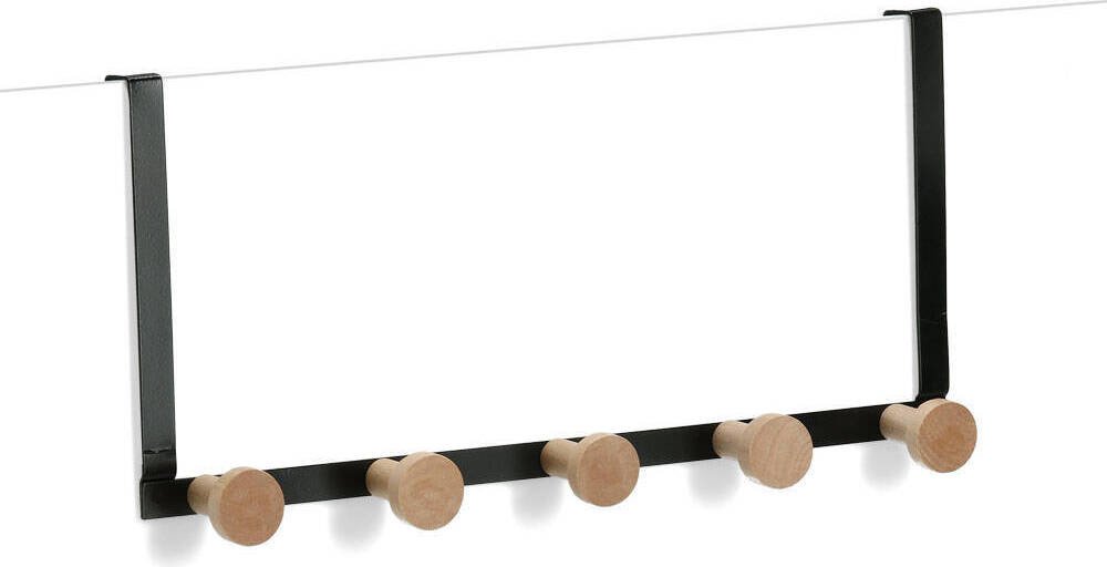 Materiál: kov + dřevo Barva: černá nebo bílá Počet háčků: 5 nebo 1 v sadě 2ks Šířka dveří: vhodné pro dveře do 2 cm