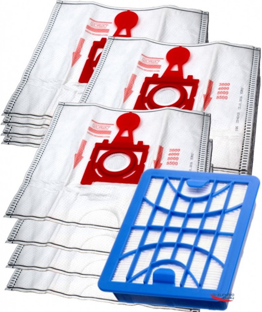 Sada HEPA filtr pro vysavače ZELMER H13 a ZMB03K WORWO, 12x sáčekSada HEPA H13 filtr a WORWO ZMB03K Perfect Bag sáčky 12ks pro ZELMER Jupiter 4000, ZELMER Magnat ve třech baleních s filtry ZELMER 2000.0050, ZELMER 5000.0050, ZELMER ZVCA 050A, ZELMER ZVCA 050C, ZELMER SAF-BAG 49.4020, ZELMER SAF-BAG 49.4220, ZELMER SAF-BAG ZVCA 300B, MENALUX 7003, SWIRL Z114, AJS FR-7562 kompatibilní, jsou vhodné d...