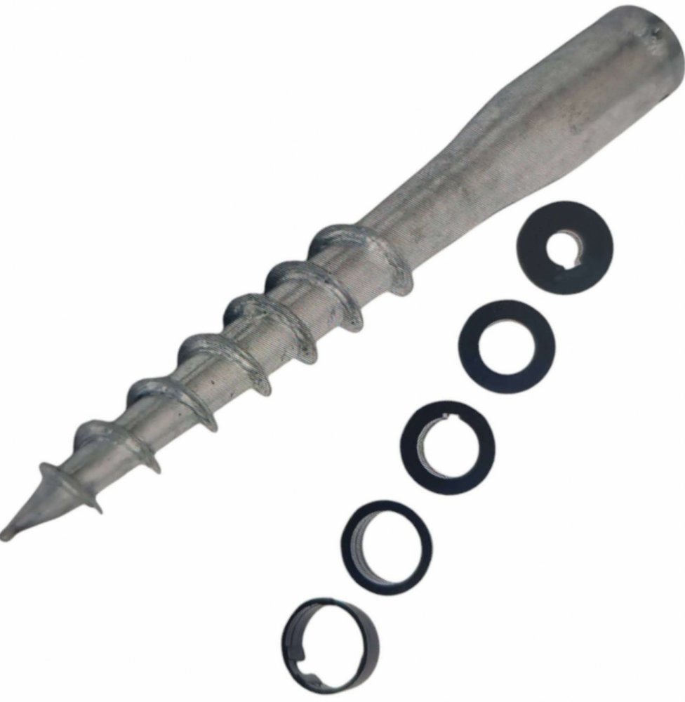 Použití a výhody: Tento kvalitní zemní vrut poskytuje pevné a spolehlivé řešení pro ukotvení. Plastové redukce zajišťují kompatibilitu s trubkami různých průměrů a žárové zinkování ochraňuje před korozí.