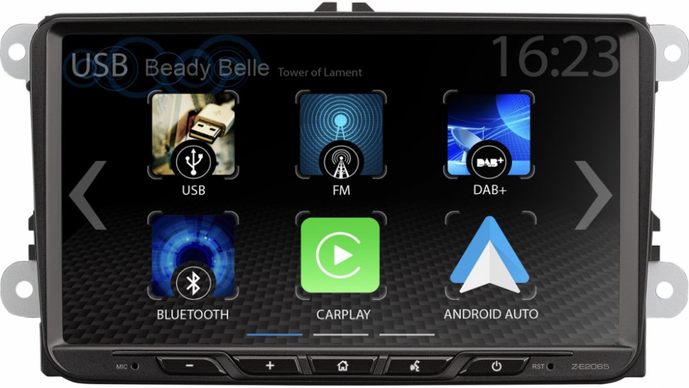 ZENEC E>GO Z-E2065 -Autorádio pro VW, Seat, Škoda (platformy Golf 5 + 6), multimediální centrum s 9" / 22,9 cm dotykovým displejem, multimediální systém s Apple CarPlay, Google Android Auto, DAB+Tento multimediální systém ZENEC určený pro konkrétní vozidlo je vizuálně i technicky kompatibilní s různými modely VW, Škoda a Seat. Systém Z-E2065 je propojen s elektronikou vozidla prostřednictvím sběrn...