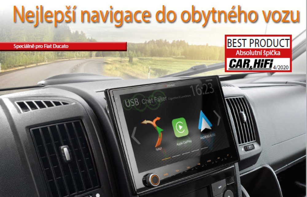 Multimediální rádio a navigační systém pro obytné vozy FIAT Ducato III, Citroën Jumper II a Peugeot Boxer II.