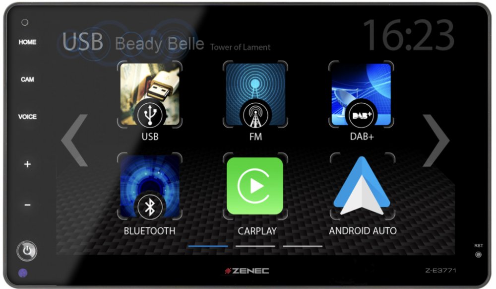 Integrovaný tuner DAB+ umožňuje pohodový mobilní příjem digitálního rádia v nejvyšší kvalitě. Moderní modul DAB+ zaujme snadnou obsluhou a rozmanitostí funkcí: DAB-DAB Following, DLS-Text, MOT-Slideshow a Comfort Scan. Kromě FM RDS tuneru má Z-E3771 dva porty USB 2.0, které lze použít k přehrávání audio a video souborů (USB1 a USB2) a k připojení smartphonů Apple iOS a Android (USB1).