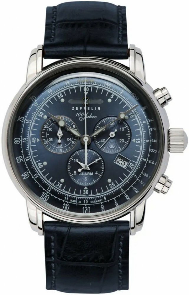 Hodinky Zeppelin 7680-3 jsou výjimečným modelem z řady 100 Jahre Zeppelin, určeným pro muže, kteří hledají spojení tradičního leteckého stylu s moderními funkcemi. Tyto pánské hodinky vynikají elegantním modrým ciferníkem s ručičkovým číselníkem, který je doplněn výraznými indexy, a kulatým ocelovým pouzdrem o průměru 42 mm.