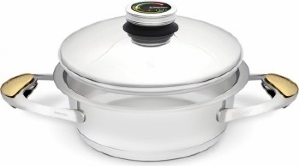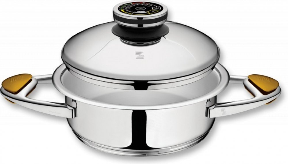 POKLICE ZEPTER:Výrazně těžší poklice dokonale sedne na okraj nádoby a během vaření ji hermeticky uzavře vytvořením tzv. vodní zátky, která je podstatou vaření v uzavřeném cyklu a současně brání znehodnocení jídel. Poklici Zepter můžete odložit za úchytky nádoby, čímž ušetříte místo na kuchyňské lince.