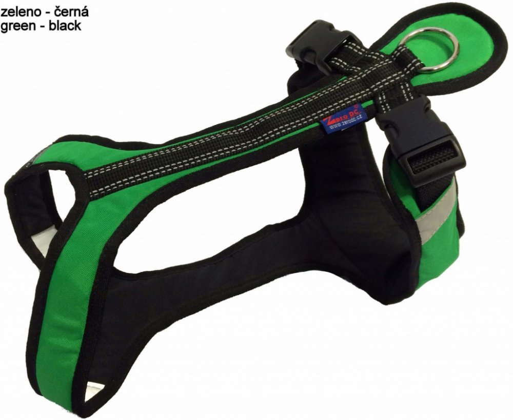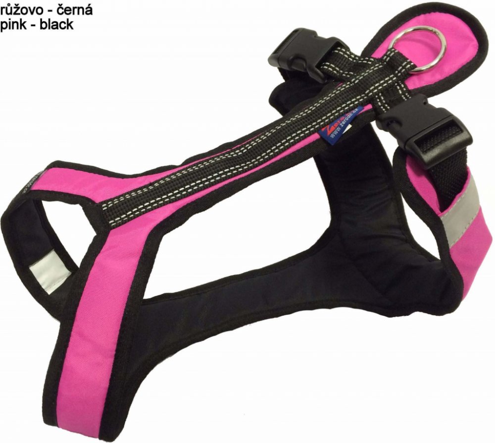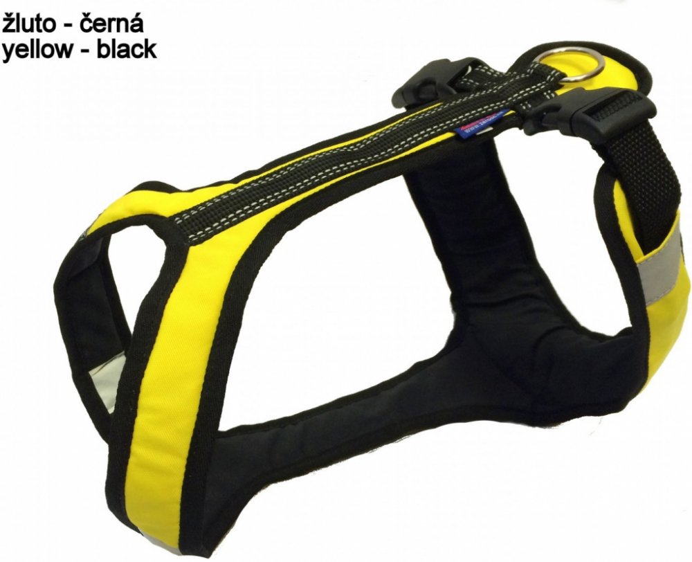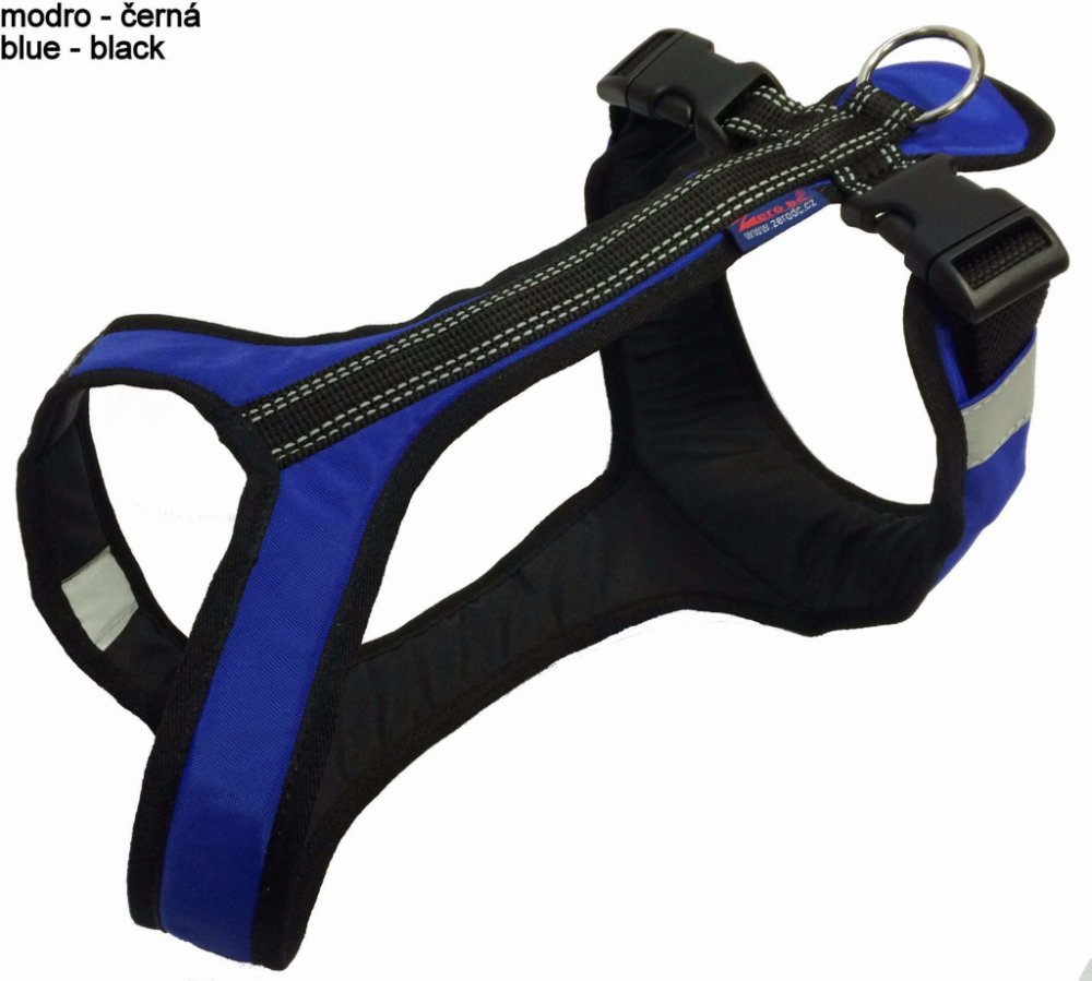 jsou na něm našité reflexní prvky (tak aby byl pes viditelný ze všech stran)