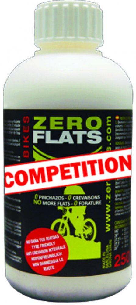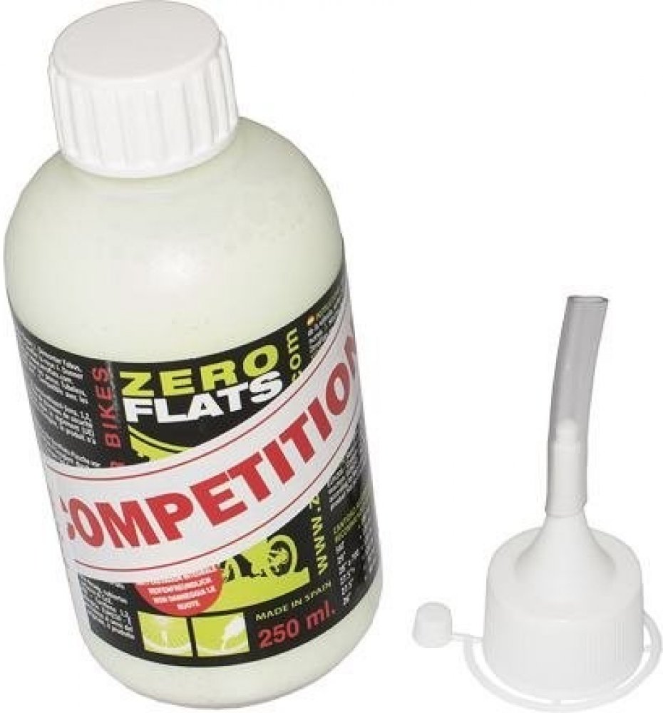 Latexové mléko. High level formula navržená pro závodní podmínky, těsní rychleji a efektivněji. Pokud nechcete ztratit ani sekundu na trati, je ZERO FLATS COMPETITION správná volba! INSTALACE Na utěsnění 1 kola potřebujete 60ml Zero flats mléka. Pokud použijete Tubeless, TNT nebo Tubeless Ready pneumatiky, stačí Vám pumpa dílenská nebo CO2. Pneumatiku nasaďte na ráfek a nafoukněte ji tak, aby patky pláště zapadly do ráfku. Potom vyšroubujte ventilek a nalijte 60ml Zero flats a nafoukněte na požadovaný tlak. Při instalaci běžných plášťů je postup stejný, ale k nafouknutí budete potřebovat kompresor.