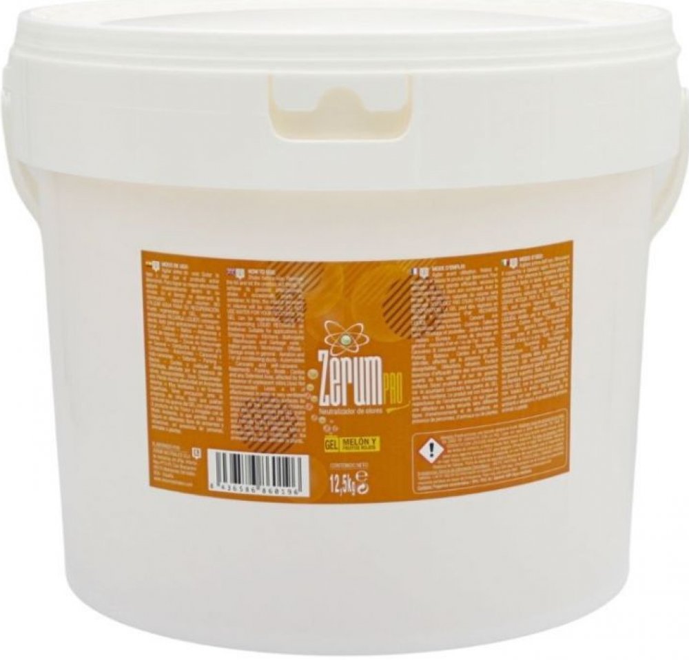 Univerzální, netoxický a účinný neutralizér zápachu Zerum PRO Gel Meloun & Lesní plody, 12.5 kg se postará o důkladnou eliminaci nežádoucích pachů v uzavřených místnostech. K dostání v balení 400 g, 900 g, 3,3 kg, 5 kg, 12,5 kg a v 5 vůních: lesní jahoda (Fresa silvestre), meloun a červené ovoce (Melón y frutos rojos), máta (Mentolado), neutrální (Neutro), čistá (Limpio).