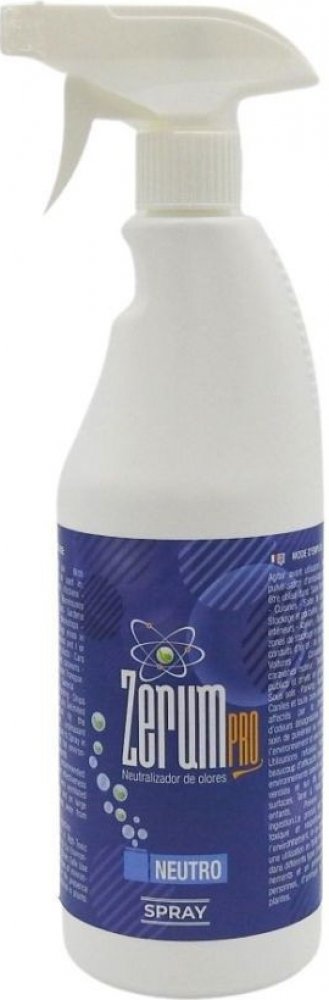 Univerzální, netoxický a účinný neutralizér zápachu Zerum PRO Spray Neutral, 750 ml se postará o důkladnou eliminaci nežádoucích pachů v uzavřených místnostech. K dostání v balení 750 ml a v 6 vůních: lesní jahoda (Fresa silvestre), meloun a červené ovoce (Melón y frutos rojos), máta (Mentolado), neutrální (Neutro), čistá (Limpio), repelent Citronela.