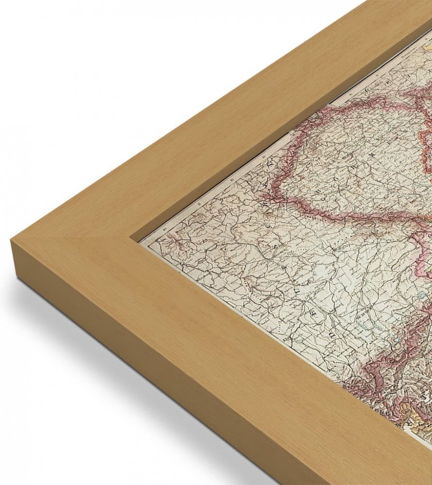 ZES Rakousko - Uhersko 1890 - nástěnná mapa 86 x 67 cm Varianta: mapa v dřevěném rámu, Provedení: Pegi jádro ořechu