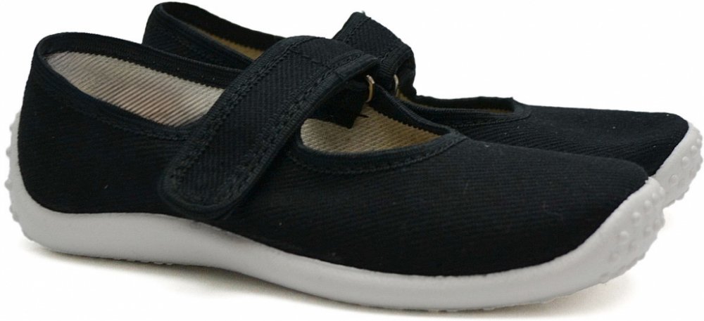 Textilní bačkůrky na boční suchý zip. Lehké, ohebné. Vhodné pro střední nožičky, nevhodné pro dívky s vyšším nártem. Země původu. Polsko