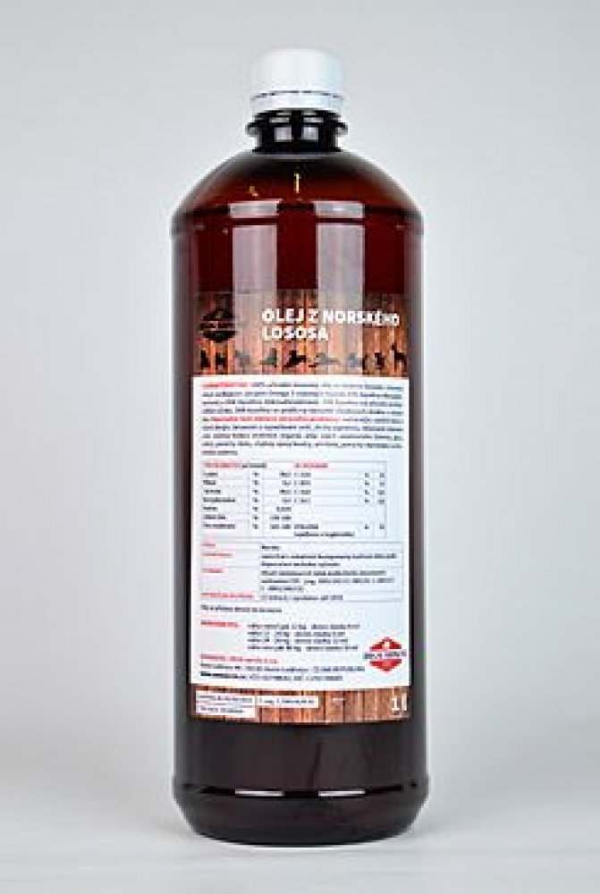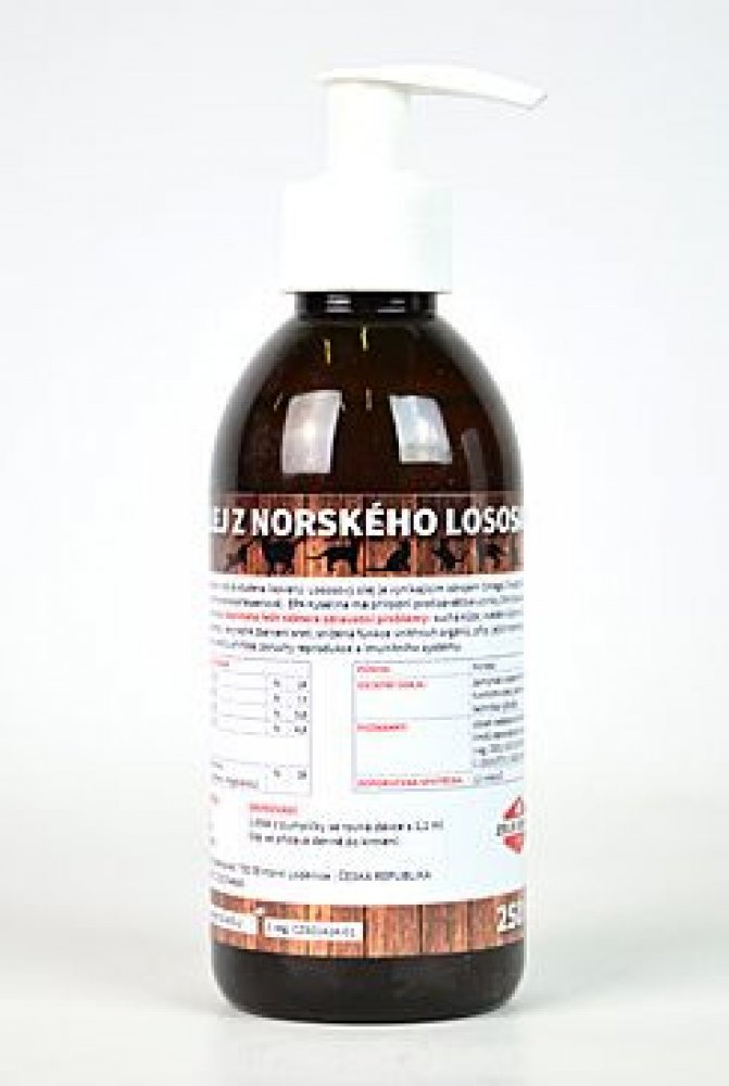 Vhodné pro psy s problémy kůže a srsti - alergie, suchá kůže, vypadávání chlupů, svědění, matná srst. Denní užívání lososového oleje působí proti těmto problémům léčivě i preventivně. Posiluje imunitní systém. Je bohatý na Omega 3 EPA a DHA a Omega 6 kyseliny. Pro psy a kočky se suchou kůží, svěděním kůže, lysinami a matnou srstí.
