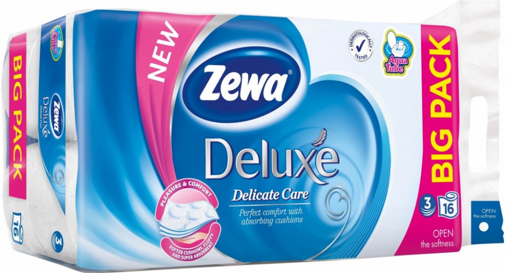 Mimořádná péče a měkkost vám bude naservírována prostřednictvím prémiového toaletního papíru bílé barvy. Každý útržek bude laskat vaši pokožku a vy si budete připadat jako v sedmém nebi. Zaručenou kvalitu vám přinese toaletní papír bez parfemace a jakéhokoli potisku. Jedinou ozdobou produktu je potisk s nápisem Zewa. Vymotané roličky od toaletního papíru mohou být vhozeny do toalety a spláchnuty, zde se snadno rozpustí. Tři vrstvy zaručí dostatečnou pevnost. Jediná rolička, kterou můžete spláchnout do toalety 1. jednoduše vhoďte roličku do záchodové mísy a spláchněte. Není třeba již splachovat samostatně. 2. Rolička se v potrubí okamžitě rozpustí a je biologicky rozložena, protože je vyrobena ze stejných vláken jako toaletní papír.
